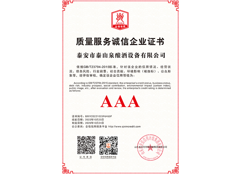 泰安市泰山泉釀酒設(shè)備有限公司,是一家專業(yè)從事釀酒設(shè)備機(jī)械化研發(fā)并集技術(shù)咨詢,工程設(shè)計(jì),制造安裝,人員培訓(xùn)及售后服務(wù)為一體的綜合性企業(yè),本公司主要產(chǎn)品為:大曲清香、小曲清香、大曲醬香、大曲濃香等香型白酒機(jī)械化設(shè)備。  本公司與中國(guó)科學(xué)院自動(dòng)化研究所簽訂技術(shù)服務(wù)合同,引進(jìn)先進(jìn)技術(shù),研究生產(chǎn)全自動(dòng)化機(jī)械釀酒設(shè)備,由中國(guó)科學(xué)自動(dòng)化研究所的技術(shù)支持,打造最先進(jìn)的生產(chǎn)釀酒設(shè)備,公司有信心打造全國(guó)最先進(jìn)白酒...